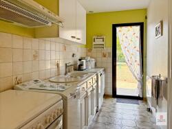 Maison sur sous-sol enterré comprenant au rez-de-chaussée : Entrée, salon-séjour équipée d'une cheminée foyer ouvert, cuisine indépendante aménagée et équipée, chambre + dressing, salle de bain, arrière cuisine-buanderie, wc.