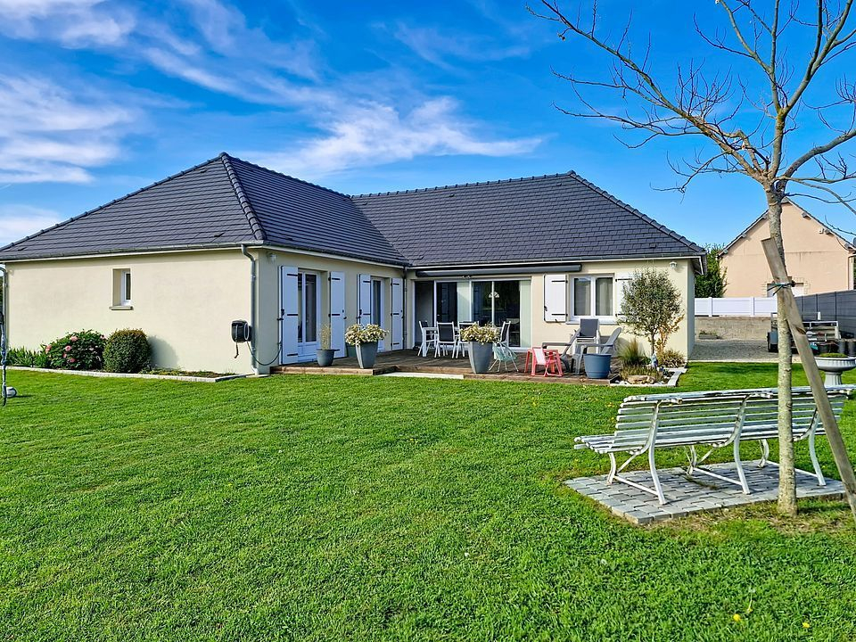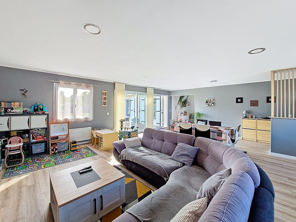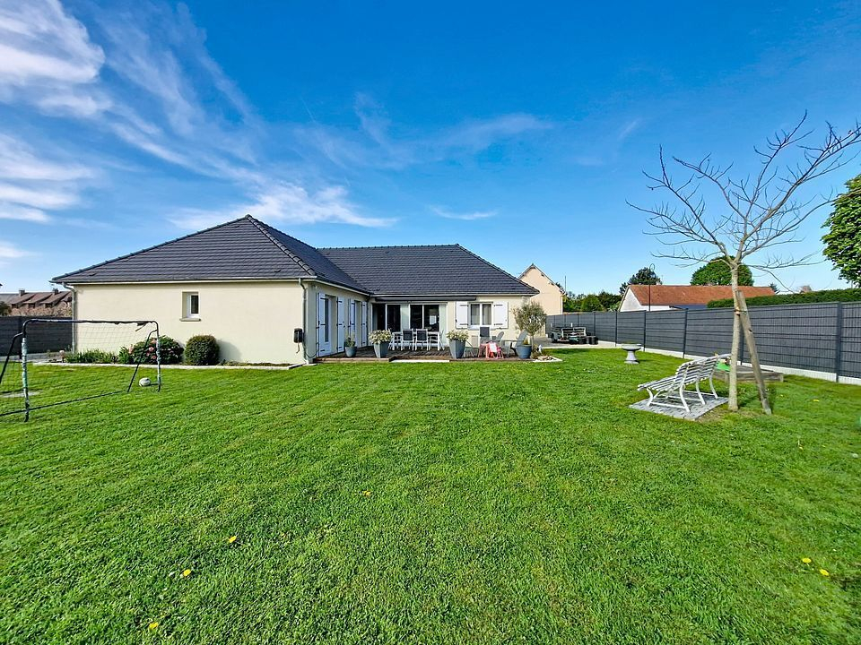 Maison comprenant au rez-de-chaussée : entrée, salle à manger, cuisine, salon, dégagement, WC, 1 chambre avec douche et lavabo, une petite pièce, à l'étage : palier, 2 chambres, salle de bains. Terrain :1500m² environ.