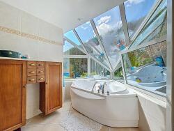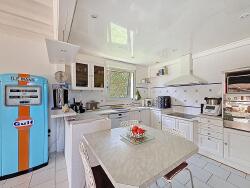 Le rez de chaussée offre un grand espace de vie avec sa véranda chauffée, cuisine aménagée, 2 salons, une salle de jeux, une chambre, une salle de bains douche et une buanderie.