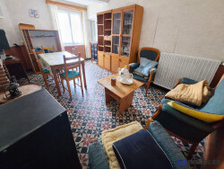Maison mitoyenne d'environ 104m² offrant au rez-de-chaussée : sas d'entrée, salle à manger, séjour, cuisine, chaufferie, salle d'eau avec wc. A l'étage : trois chambres dont deux en enfilades, wc. Terrasse sur le devant (environ 30m²), jardin sur l'arrière (d'environ 150m²). Parcelle de jardin de 225m² en sus non attenante. Garage non attenant. Chauffage par pompe à chaleur récente. Huisseries PVC double vitrage avec volets roulants. Prévoir travaux de rafraîchissement.