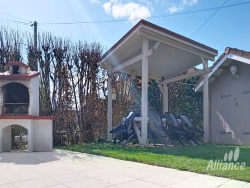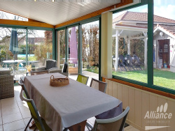 Située sur la commune de Chaux, en impasse, vous serez immédiatement séduits par ce magnifique pavillon de construction récente (1980). Construit en demi palier, vous profitez au premier niveau de l'ambiance chaleureuse d'une cuisine ouverte sur un grand séjour baigné de lumière (30m2, triple exposition, poêle à bois), d'une véranda de plus de 20m2 (Sud-Ouest) avec accès au terrain, à la piscine et à la terrasse où vous attendent jardin et barbecue. Un WC séparé complète ce niveau. Si vous descendez les 4 marches, vous accédez à la buanderie (placard de 4 mètres, chaudière gaz De Dietrich de 2016) au double garage (2 véhicules en longueur, fermeture electrique, digicode, 28m2) et à la cave à vin. Si vous montez les 5 marches, vous attendent une salle de bains (douche) avec WC, une chambre double (10m2) avec dressing et une seconde chambre de 22m2 au charme intemporel, aujourd'hui bureau et bibliothèque, idéal pour le télétravail. Quelques marches plus haut, un petit coin mezzanine, la chambre No3 de 18m2 au sol et un grenier pouvant facilement se transformer en pièce habitable. Au total , 115m2 de bonheur et de calme. Terrain de 847m2 avec piscine 6.50m x 3.50m, jardin, pool house, chauffage gaz et bois, menuiseries bois double vitrage, volets roulants motorisés (individuels et général). Toiture changée en 2011. Assainissement conforme. Coup de coeur assuré. Les informations sur les risques auxquels ce bien est exposé sont disponibles sur le site Géorisques : www.georisques.gouv.fr Alliance groupe Immobilier est heureux de participer à vos projets ! Renseignements complémentaires aux 03 84 21 07 00.