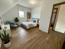 Une maison moderne et confortable La maison est équipée d'un chauffage par pompe à chaleur avec plancher chauffant, garantissant une chaleur douce et homogène. L'isolation renforcée (murs, toiture et plancher), les menuiseries PVC double vitrage avec volets roulants ainsi que la ventilation hygroréglable assurent un confort thermique et une qualité d'air optimaux toute l'année.Traversante et bien pensée pour le confort d'été, elle offre une excellente luminosité naturelle sans nécessiter de climatisation.