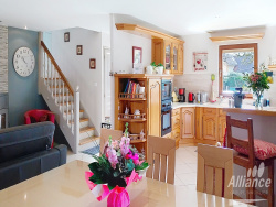 Située sur la commune de Chaux, en impasse, vous serez immédiatement séduits par ce magnifique pavillon de construction récente (1980). Construit en demi palier, vous profitez au premier niveau de l'ambiance chaleureuse d'une cuisine ouverte sur un grand séjour baigné de lumière (30m2, triple exposition, poêle à bois), d'une véranda de plus de 20m2 (Sud-Ouest) avec accès au terrain, à la piscine et à la terrasse où vous attendent jardin et barbecue. Un WC séparé complète ce niveau. Si vous descendez les 4 marches, vous accédez à la buanderie (placard de 4 mètres, chaudière gaz De Dietrich de 2016) au double garage (2 véhicules en longueur, fermeture electrique, digicode, 28m2) et à la cave à vin. Si vous montez les 5 marches, vous attendent une salle de bains (douche) avec WC, une chambre double (10m2) avec dressing et une seconde chambre de 22m2 au charme intemporel, aujourd'hui bureau et bibliothèque, idéal pour le télétravail. Quelques marches plus haut, un petit coin mezzanine, la chambre No3 de 18m2 au sol et un grenier pouvant facilement se transformer en pièce habitable. Au total , 115m2 de bonheur et de calme. Terrain de 847m2 avec piscine 6.50m x 3.50m, jardin, pool house, chauffage gaz et bois, menuiseries bois double vitrage, volets roulants motorisés (individuels et général). Toiture changée en 2011. Assainissement conforme. Coup de coeur assuré. Les informations sur les risques auxquels ce bien est exposé sont disponibles sur le site Géorisques : www.georisques.gouv.fr Alliance groupe Immobilier est heureux de participer à vos projets ! Renseignements complémentaires aux 03 84 21 07 00.