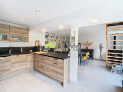 Salon lumineux de 30 m2 avec grands placards intégrés Cuisine équipée ouverte sur terrasse et jardin Poêle à bois 13 kW chauffant l'ensemble de la maison (préparation possible pour chaudière ou pompe à chaleur) 3 chambres, dont une suite parentale avec dressing et salle d'eau 2 salles d'eau, douches à l'italienne Double garage, caves et espace de stockage Terrasse, jardin et cour gravillonnée équipés et sans vis-à-vis Maison vendue entièrement meublée