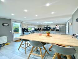 Dotée d'une grand cuisine fonctionnelle, d'une salle d'eau moderne et d'un séjour lumineux, elle offre un espace de vie convivial et bien agencé. Deux garages, un carport, une cave et un grenier viennent compléter cet ensemble, offrant des espaces de rangement pratiques. Avec ses caractéristiques attrayantes, cette résidence représente une opportunité unique pour ceux en quête d'un nid douillet alliant confort et fonctionnalité.