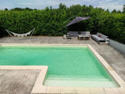 - terrasse sud de 100 m² avec piscine au chlore - terrasse bois au nord de 100 m² .