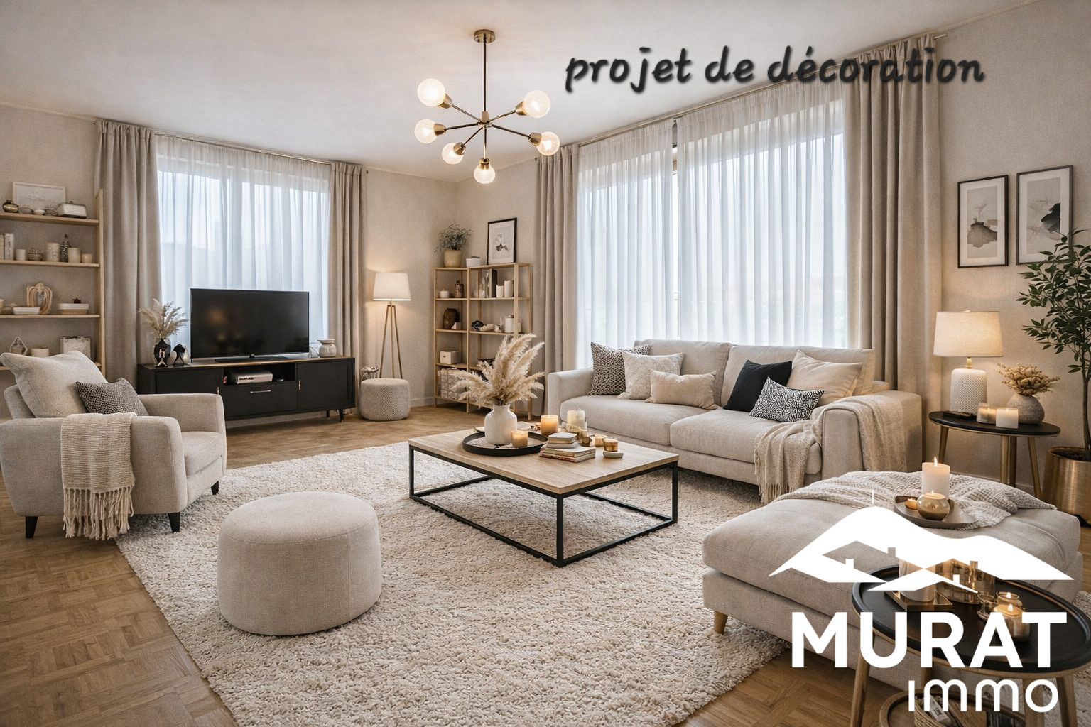 Grande pièce de vie lumineuse avec cuisine américaine ouverte sur le séjour