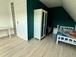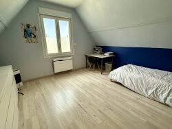 ? RDC : salon/salle à manger convivial, cuisine équipée, une chambre, salle de bain avec douche, WC indépendant ? Étage : deux chambres et un palier