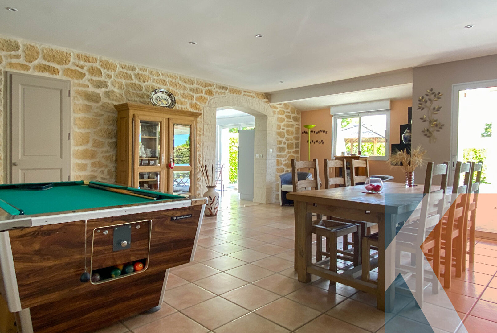 Les extérieurs comprennent une grande cour, un jardin arboré, une terrasse carrelée ainsi qu'un potager. Un garage extérieur avec galetas et un cabanon apportent des solutions de stockage appréciables. Un puits en pierre met en valeur l'authenticité du lieu. Le quartier offre un accès rapide aux services de proximité du village, et Andilly bénéficie de liaisons aisées vers La Rochelle, atteignable en une vingtaine de minutes en voiture selon trafic.