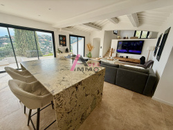 L'agence Avec Immo vous propose cette maison vue mer et sur les iles d'Or située dans un quartier recherché avec une exposition plein Sud. Entièrement rénovée avec goût, elle propose un grand salon ouvert sur la cuisine avec ilot repas, salle à manger, suite parentale avec dressing, douche et baignoire, terrasse privative pleine vue mer, deux chambres, deux salles d'eau, dressing, Appartement indépendant avec coin cuisine, salle d'eau avec WC, dressing. Superbe piscine. Entièrement climatisée. Belles terrasses dont une couverte et abritée, parcelle arborée d'environ 1000M2.