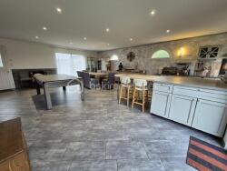 Le rez-de-chaussée s'organise autour d'une vaste pièce de vie de plus de 70 m², baignée de lumière, réunissant salon, séjour et cuisine ouverte, aménagée et équipée, avec accès direct sur l'extérieur. Vous y trouverez également deux chambres, une salle de bains avec douche à l'italienne, une buanderie, un WC séparé ainsi qu'un local technique (ballon d'eau chaude + adoucisseur). Un conduit de cheminée est déjà prévu pour une future installation. Le confort est assuré par un chauffage au sol via pompe à chaleur.
