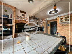 Maison de 154 m2 sur deux niveaux, avec 5 chambres et terrain clos d'environ 990 m2, située en campagne au calme avec exposition plein sud et vue dégagée. Les espaces La maison développe environ 154 m2 habitables, répartis sur 2 niveaux, avec une organisation adaptée à un usage familial. Au rez-de-chaussée, une pièce de vie d'environ 50 m2 constitue l'espace central, avec une cheminée fonctionnelle. L'exposition plein sud et les ouvertures permettent un apport de lumière constant. La cuisine aménagée et équipée, séparée, complète cet espace. La partie nuit se compose de 5 chambres, avec des surfaces comprises entre 10 m2 et 15 m2, réparties sur les deux niveaux selon l'agencement.. À l'extérieur et en dépendances :