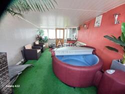 À l'extérieur, la maison dispose de quoi se stationner, d'un grand garage et d'un grand terrain clos, offrant ainsi des espaces pratiques et fonctionnels. L'ensemble est soigneusement aménagé, invitant à la détente et aux moments de convivialité en plein air.