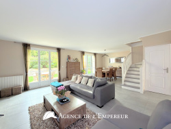 L'Agence de l'Empereur vous présente en exclusivité cette belle maison familiale de 160 m2 Carrez - 195,5 m2 au sol, hors garage de 22 m2 - située dans le recherché Domaine de l'Impératrice, très apprécié pour sa qualité de vie et celle de ses constructions, dans le quartier Buzenval de Rueil-Malmaison. Une entrée avec placard, un agréable séjour d'environ 40 m2 avec cheminée, donnant de plain-pied sur le jardin d'environ 100 m2. Une belle cuisine séparée de 12,30 m2 conçue par la marque Arthur Bonnet, offrant de nombreux rangements et coin dînatoire. Des toilettes séparées. À l'étage, une suite parentale de 23 m2 avec salle de bain attenante et toilettes, trois grandes chambres avec placards de 12,3 m2, 13,7 m2 et 14 m2, une salle de douche et des toilettes séparées. Niveau combles, une pièce de jeux/sport et 5e chambre ou bureau. Possibilité de réaménager l'espace, les cloisons n'étant pas porteuses, laissant ainsi libre cours à toutes vos aspirations d'agencement. Chauffage et ballon d'eau chaude électriques. Double vitrage oscillo-battant de moins de 10 ans. Un garage avec coin buanderie. La maison est idéalement située au coeur du domaine, au calme. Sa construction par Bréguet date des années 1990. Commerces et bus à quelques pas, école élémentaire publique Alphonse Daudet et privée Charles Péguy à moins de 2 minutes à pied. Taxe foncière : environ 1 600 euros/an et charges de l'ASL : environ 500 euros/an, dont provision fonds de travaux. Nouveau calcul du DPE qui changera la note de D à C au 1er janvier 2026. Visite en vidéo 4K : https://www.youtube.com/embed/Zl-IbprtyBE?si=lNh-vQfaB7l40IoG Les informations sur les risques auxquels ce bien est exposé sont disponibles sur le site Géorisques : www.georisques.gouv.fr