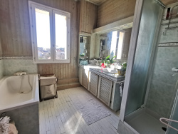 LIMOGES OUEST - Proximité CHU. Dans quartier recherché, LUMINEUSE MAISON DE VILLE (171 m2) mitoyenne composée d'un bel espace de vie triple en rez-de-chaussée donnant sur terrasse et jardin, une cuisine indépendante aménagée et équipée donnant également sur la terrasse et un wc. Au premier étage se trouvent 3 chambres dont une avec dressing, salle de bain et un wc. Au dernier niveau cette maison vous offre deux chambres supplémentaires et une salle d'eau. La maison dispose également d'un sous-sol complet avec partie cave et garage. Chaudière au gaz de ville neuve et cheminée fonctionnelle. Du charme et du potentiel ! A saisir rapidement.