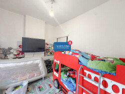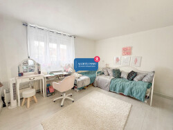 - Une chambre avant de 13 m2 avec placard de rangement portes coulissantes et grande fenêtre PVC triple vitrage avec volet roulant électrique.