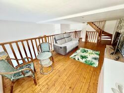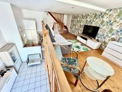 <p>Maison de 73m² contemporaine atypique à Royan ... tous commerces à pied</p><p>Amateurs de lieux de vie uniques, cette maison mitoyenne sur 3 niveaux, nichée dans une impasse paisible de Royan, saura vous séduire par son agencement original et sa proximité immédiate des commerces.</p><p>Au rez-de chaussée : une entrée avec un placard de rangement, une cuisine ouverte moderne sur l'espace de vie. Une baie vitrée donnant sur une grande cour (89m²) intimiste, avec un emplacemant de stationnement.</p><p>À l'étage (mezzanine) : Un salon lumineux et original, au charme unique, avec plafond bas qui crée une ambiance cocooning.</p><p>Au second étage : Deux chambres ouvrant sur un balcon avec vue sur le jardin, une salle d'eau et des toilettes séparés.</p><p>En plus : 2 places de stationnement extérieures, un garage, en demi-niveau de sous sol 2 espaces supplémentaires pour moto ou rangement et un atelier au fond.</p><p>Une maison pleine de caractère parfaite pour ceux qui recherchent une habitation différente, fonctionnelle, et idéallement située ! Pour découvrir ce bien contactez : Jana Liss Agent REMAX au 06.03.32.97.87</p>