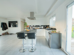 Ce bien dispose d'une pièce de vie avec cuisine ouverte de 45m² donnant sur les deux terrasses, 2 chambres avec avec placards (12.90m² et 11,70m²), une salle d'eau (7m²), un WC indépendant et d'un garage entièrement isolé (26.50 m²) pouvant être aménagé en 3ème chambre.