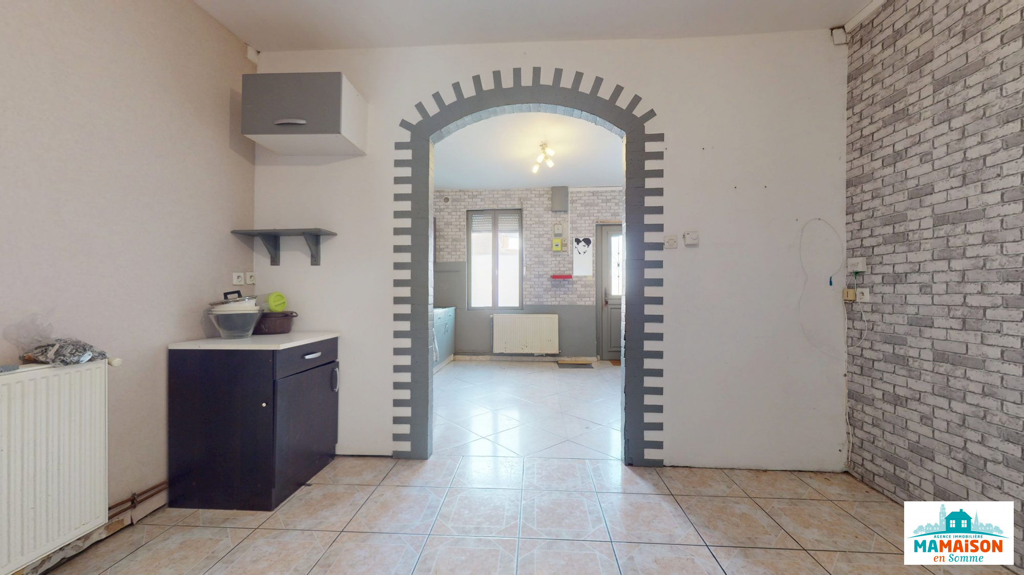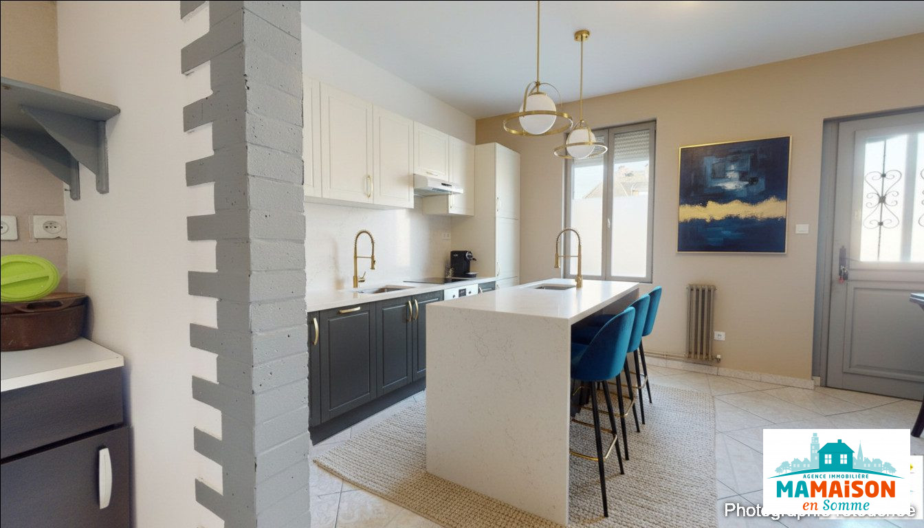 EN EXCLUSIVITE Ma Maison en Somme vous propose une maison de 64m² à Corbie, proche du centre ville et des commerces, comprenant un séjour de 13m2 lumineux, une cuisine de 11m² ouverte bénéficiant une fenêtre et une porte vitrée donnant accès direct à la cour. Au premier étage, vous arrivez sur un bureau/palier de 7m2 avec un parquet stratifié, une belle chambre de 13m² et une salle d'eau de 4m² avec un lavabo, une douche, un WC et un parquet bateau. Un escalier vous emmène jusqu'au deuxième étage où se trouve une chambre de 15m² mansardée équipée de deux velux , stores occultants et parquet stratifié. Cour Dépendance avec un sanybroyeur séparé et un espace atelier stockage