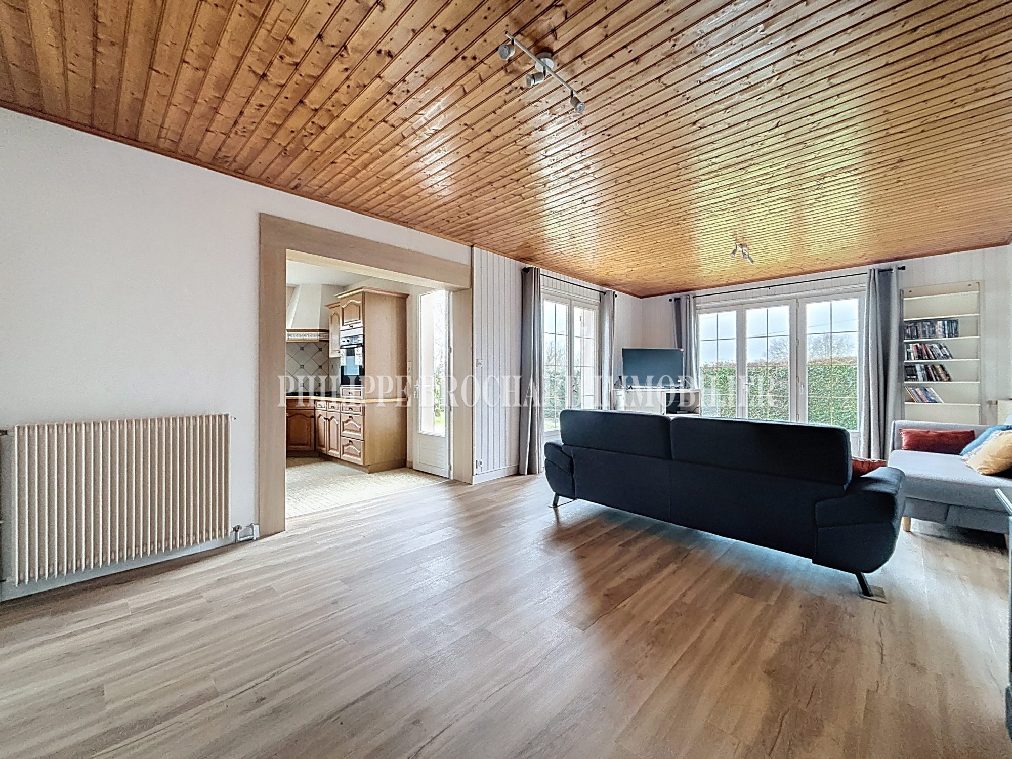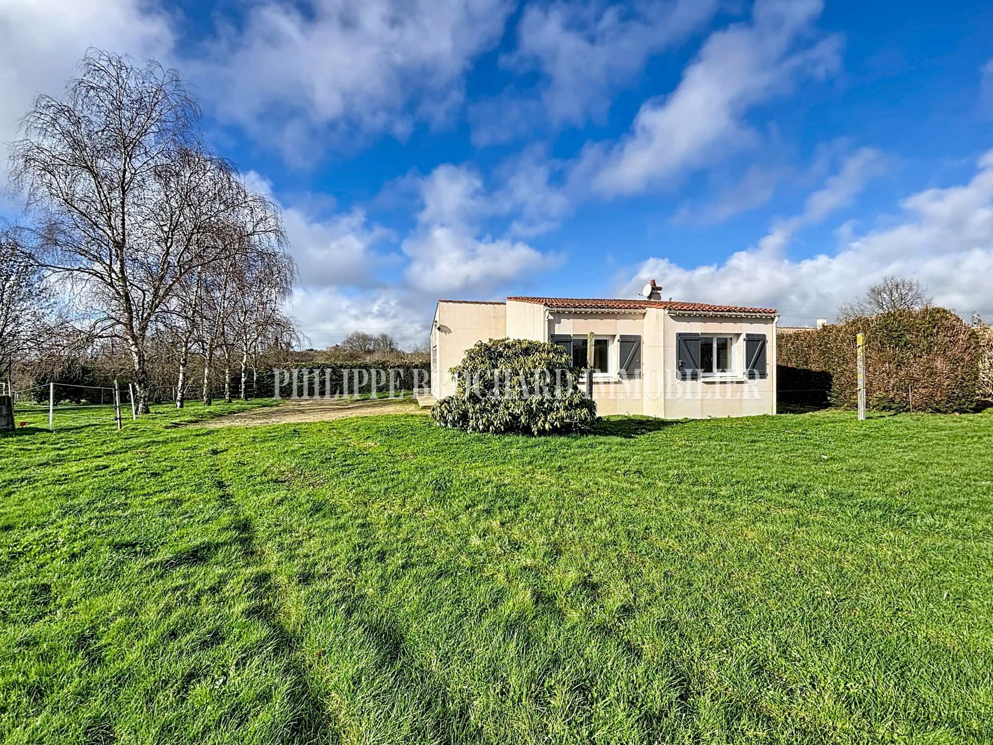 Maison T3 de plain pied de 63 m² env., construction de 2006 'Les Maisons Vendéennes', comprenant hall, séjour/salon exposé sud accès terrasse, coin cuisine ouvert équipée et aménagée, dégagement, deux chambres, salle d'eau, WC, garage de 16 m², situation plein centre bourg de VAIRE accès commerces à pieds, bon état d'entretien, locataire en place bail jusqu'au 30/06/2027.