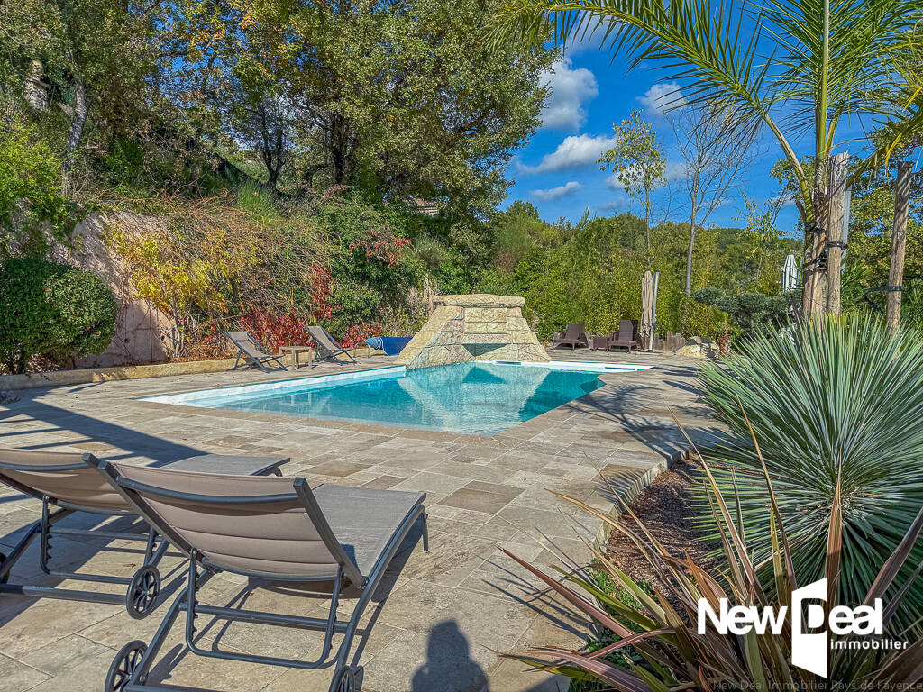 Nouveauté Azur immo !Dans un secteur à proximité à pied des commodités, mais préservé de nuisances, avec une superbe parcelle arborée et clôturée de 1900 m². Maison en monopropriété en R+1, composée de deux habitations, avec garage et piscine sous garantie. Première habitation de 101 m²+18 M² de véranda , en rez de chaussée , de type 4 , composée d'une entrée , un séjour expo sud et ouest, une véranda, avec cheminée et climatisation, une cuisine contemporaine équipée , un dégagement, un wc , une salle d'eau , et 3 chambres. A l'étage, seconde habitation plus contemporaine créée en 2021 par surélévation ( décennale , permis et conformité )de 93 m² habitables , de type 5, composée d'un séjour de 32 m² avec cuisine ouverte , une chambre attenante (possibilité agrandissement séjour), un dressing, une grande terrasse carrelée de 12 m² , un dégagement, une salle d'eau, 3 chambres et un wc . Système récent de plancher chauffant /rafraichissant. Superbe espace piscine avec sa cuisine d'été et pool house. Quelques finitions mais bon état général, dans un environnement très rare pour sa proximité avec le centre. Votre contact Matthias MEDIGUE 0683943789 , agent commercial enregistré au RSAC de Draguignan num 814511515.Les informations sur les risques auxquels ce bien est exposé sont disponibles sur le site Géorisques : www.georisques.gouv.fr