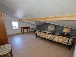 Maison divisée en deux logements. Logement No1 Maison sur un étage composée : Au rez-de-chaussée une cuisine (meuble bloc évier, hotte), un salon qui peut servir de chambre, une salle d'eau avec un WC (douche italienne, un meuble une vasque avec un miroir et une colonne de rangement), un placard. A l'étage : Une pièce mansardée et un débarras. Cabanon de jardin attenant à la maison. Terrasse en béton brute couverte et un jardinet. Disponible pour mars Les informations sur les risques auxquels ce bien est exposé sont disponibles sur le site Géorisques : www.georisques.gouv.fr Agence Immobilière NATIMMO à Belin-Béliet