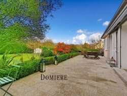 Belle maison contemporaine totalement atypique de 200 m² environ sur 3 niveaux - 8 pièces - 5 chambres - terrain clos de 2.855 m² arboré et fleuri, en bordure de forêt. Une partie du rez-de-chaussée surélevé est consacré à une entrée desservant une vaste salle à manger avec poêle à bois d'environ 35 m² (accès direct sur une terrasse exposée ouest) ouvrant sur une cuisine aménagée à l'américaine, 2 chambres, 1 salle de bains et un wc indépendant. De l'entrée quelques marches vous conduisent dans un salon en double exposition, avec des volumes généreux, lumineux et ensoleillé et vers une grande chambre avec salle de douche. Au 1er étage, un palier permet d'accéder à deux chambres avec de grands placards et une salle de bains avec wc et dressing. Le sous-sol entièrement aménagé offre des rangements complémentaires avec un espace chaufferie, buanderie avec douche, cave à vin et salle de jeux ou de lecture. Un garage extérieur en accès direct avec la maison (65 m² environ pour 2 ou 3 voitures) est agrémenté d'un four à pizza/BBQ permet de ranger le mobilier extérieur. Jardin (avec portail électrique) arboré et fleuri entièrement clos. Maison parfaitement isolée, fenêtres en double vitrage, volets électriques et manuels. Cette belle région d'Eure-et-Loir est d'un accès très facile de Paris par la N 12, plusieurs gares Houdan, Dreux ou Bueil vous emmènent à Paris (gares Montparnasse ou Saint Lazare). Toutes les infrastructures administratives, scolaires, cinéma et commerces sont à proximité, nombreuses activités sportives (golfs, tennis), historiques et culturelles sont organisées dans un environnement proche. La tranquillité et le charme de cette région, si riche d'histoire de France, sont des atouts complémentaires et vous séduiront.
