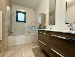 Cette maison d'une surface habitable de 110 m2 habitable environ, de plain-pied, se compose d'un salon/séjour donnant sur terrasse, une cuisine ouverte aménagée et équipée, 3 chambres dont 1 avec dressing et salle d'eau privative, un bureau, une salle de bains + wc, un wc. Une arrière cuisine et un garage complètent l'ensemble.