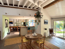 Agréable maison ancienne de 122 m2 sur un terrain d'environ 600 m2 composée : Au rdc : séjour avec poêle à bois, salle à manger, cuisine et toilettes. A l'étage : palier, trois chambres et une salle de bains. Un garage et un appentis complètent ce bien dans un agréable jardin à l'abri des regards. Beaucoup de charme, au calme. Loyer : 1 550 EUR - pas de charges comprises Disponible au 1er août 2025.