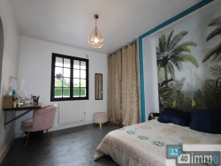 Maison de plain pied rénovée en 2017 de 114 m2, composée d'une entrée avec placard, d'un grand salon séjour de 45 m2 très lumineux, 3 chambres avec placard dont une suite parentale et une salle d'eau avec douche italienne et WC. A l'extérieur grande terrasse en béton imprimé avec piscine traditionnele de 10.5 x 5.5 au clhore, une cuisine d'été et un chalet bois de 19 m2 le tout sur un terrain arboré de 1771 m2 proche des commodités et au calme.