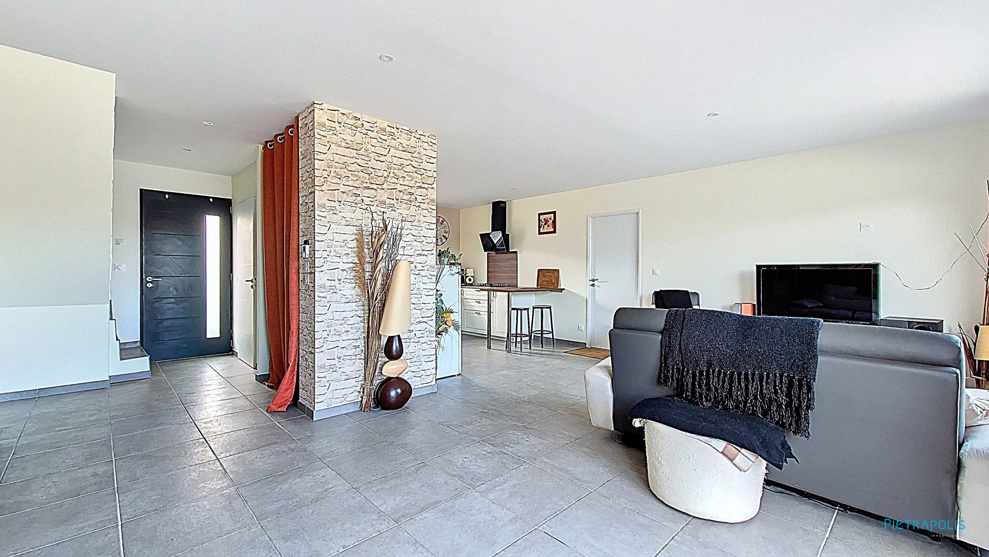 La maison, en excellent état intérieur, dispose d'une cuisine équipée et indépendante, idéale pour les amateurs de cuisine. Les ouvertures en bois et les portes à double vitrage garantissent une isolation optimale et une esthétique raffinée.