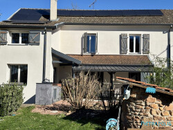 ? Caractéristiques principales : ? Superficie :132m² ? Classement énergétique : C ? Extérieur : terrasse, jardin, puits, atelier et garage.? Nombre de chambres : 3 Points forts : ? Commerces, supermarché, écoles, centre de loisirs, transports scolaires, associations sportives et culturelles. ? Façade et toiture en très bon état - Panneaux photovoltaïques en autoconsommation avec batterie virtuelle. ? Les travaux d'isolation intérieure / extérieure et le combiné chauffage 'Pompe à chaleur + cheminée bois' apportent une performance énergétique non négligeable.