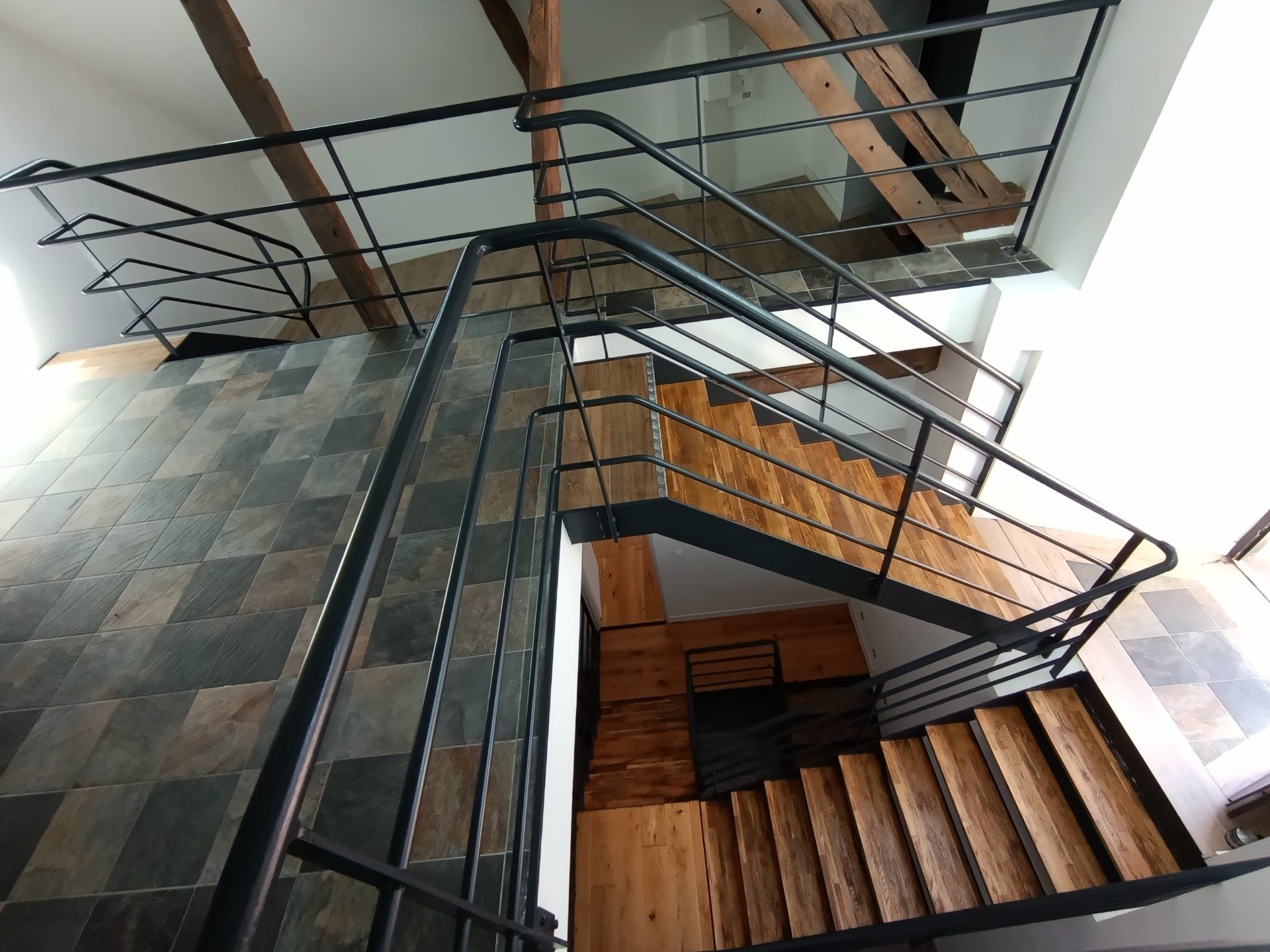 Cette maison, répartie sur trois niveaux, offre un agencement fonctionnel et lumineux :