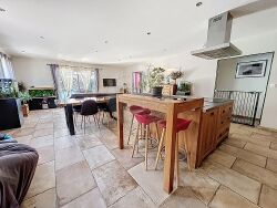 <li>Une vaste pièce de vie baignée de lumière, avec un séjour donnant accès à une terrasse ensoleillée.</li>