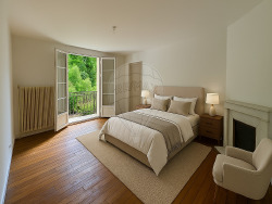 <p>À l'étage, trois <strong>chambres spacieuses</strong>, dont deux avec <strong>balcon privatif</strong> surplombant le jardin, offrent calme et confort. La <strong>salle de bain</strong> est équipée d'une <strong>baignoire</strong>, d'une <strong>douche</strong> et de <strong>toilettes</strong>.</p>