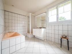 A l'étage, le palier dessert deux chambres, une vaste salle de bains et un wc séparé.