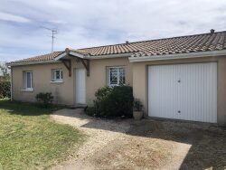 Au calme, maison construite de plain pied en 2000 sur une parcelle de 519m². Elle se compose d'une entrée, un séjour, une cuisine indépendante, un cellier, trois chambres, une salle de bain et des WC.