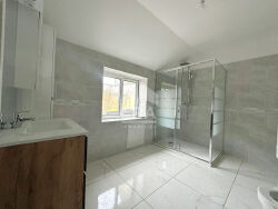 Une salle de bain spacieuse avec une belle douche à l'italienne.