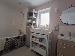 La maison offre un hall d'entrée, un wc séparée, une buanderie, une cuisine moderne et équipée, une pièce de vie lumineuse, une chambre au rdc. A l'étage un grand palier et deux chambres. A l'extérieur jardin et pergolas sans vis à vis.