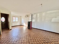 Venez découvrir cette maison mitoyenne des deux cotés sur un sous-sol complet piéton accessible de l'intérieur. Elle se compose au rez-de-chaussée : d'une entrée, un wc, un salon séjour avec poêle à granulés et climatisation réversible donnant sur une véranda, une cuisine aménagée et un garage avec porte motorisé. A l'étage : un palier desservant trois chambres dont deux avec placards, une salle d'eau avec wc et un dressing. Travaux de remise aux gouts du jour à prévoir. Le chauffage est électrique et les fenetres sont en pvc double vitrage avec volets roulants. Jardin clos avec cabanon. A venir visiter sans tarder !