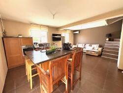 Au RDC grâce à une exposition idéale, la pièce à vivre de 35m2 , climatisée pour votre confort, s'ouvre sur une cuisine moderne, entièrement équipée et aménagée, parfaite pour partager des moments conviviaux en famille ou entre amis. Vous trouverez aussi des WC indépendants ainsi qu'un garage.