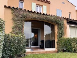 Rare à la vente. Située aux Issambres, au sein d'une résidence fermée et sécurisée avec piscine, cette charmante maison jumelée de style provençal bénéficie d'une position dominante sans vis-à-vis et d'une vue panoramique sur la mer et les collines. La mer et les plages de sable se trouvent à seulement 1,3 km.