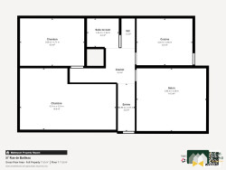- Entrée, - Cuisine indépendante équipée et aménagée, - Salon avec cheminée, - 1 chambre vue jardin, - 1 grande chambre pouvant redevenir 2 chambres, - Salle d'eau, - WC indépendant.