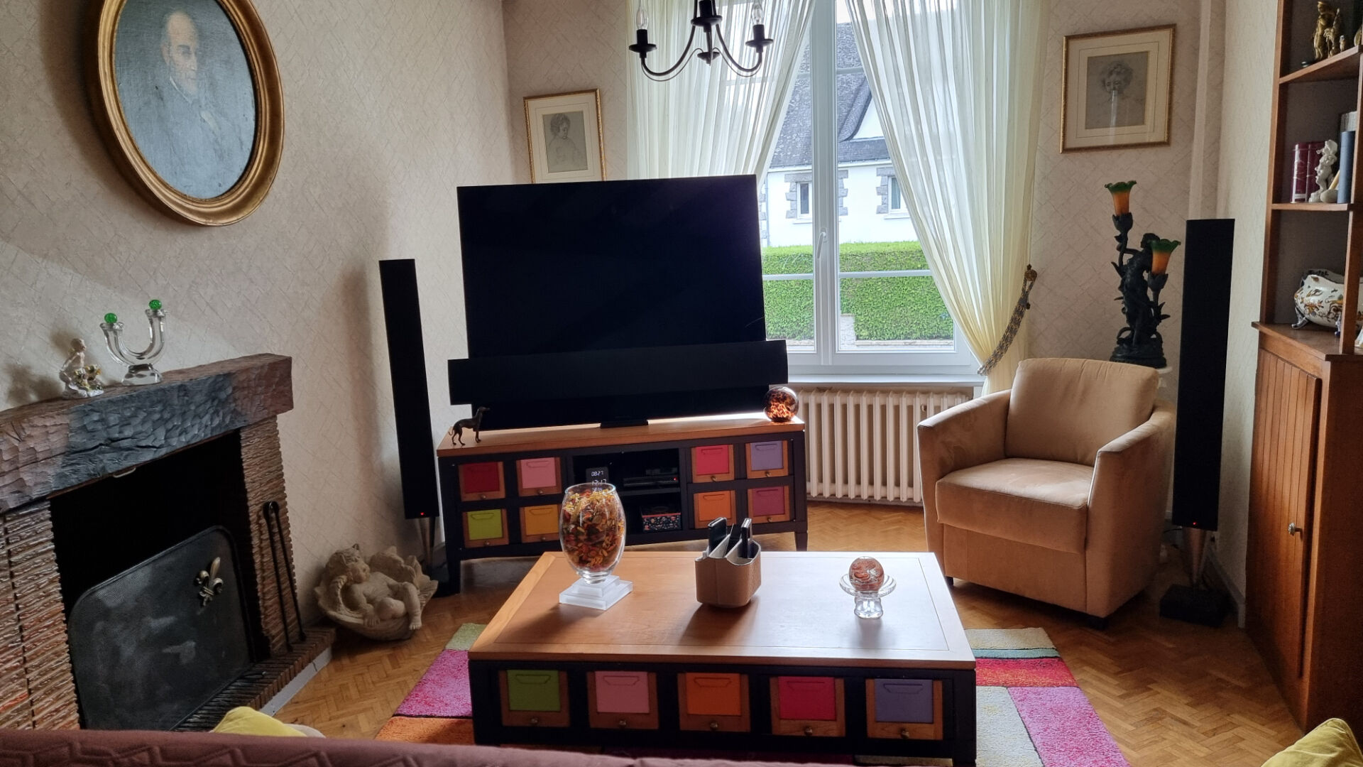 A la sortie du bourg, grande maison familiale avec vie de plain-pied comprenant un sous-sol complet ; Au rez-de-chaussée : entrée, cuisine, salon-séjour avec insert, une chambre, salle de bains, wc séparé ; A l'étage : trois chambres. Un garage attenant. Jardin.