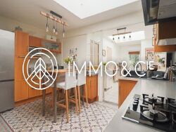 À l'arrière, une cuisine entièrement aménagée et pratique, prolongée par une arrière-cuisine, bénéficie d'une belle luminosité grâce à deux puits de lumière diffusant un éclat naturel.