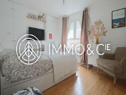 Vous serez séduit par ses matériaux d'époque (carreaux de ciment, parquet en chevron, planchers bois d'origine, belle hauteur sous plafond) subtilement mariés à une décoration sobre et élégante.