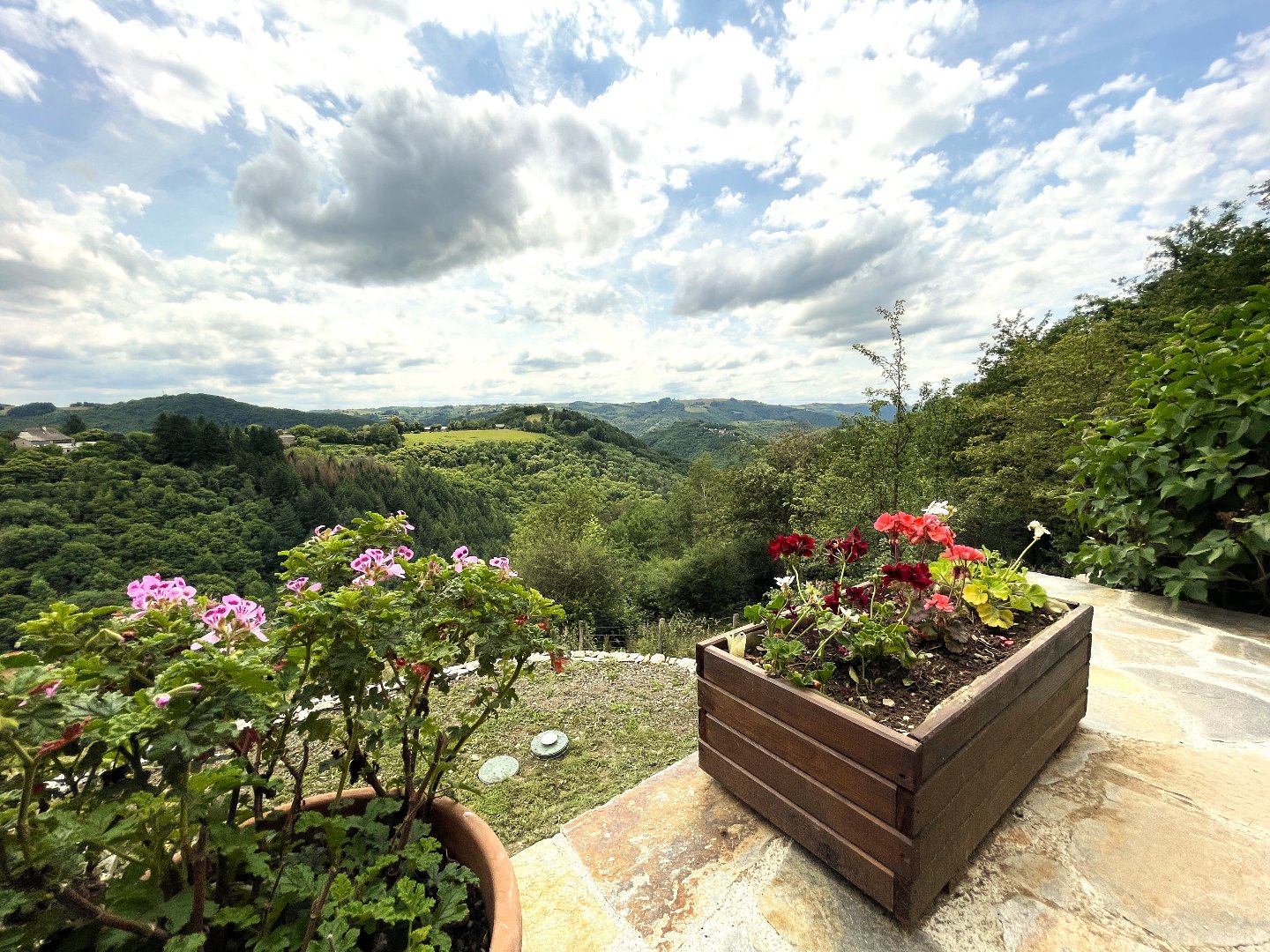 La propriété offre des superbes vues sur le Fel et la vallée du Lot - idéale pour les vacances ou la vie à la campagne.