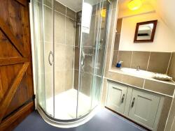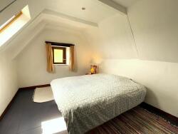 A l'étage, deux chambres mansardée de 12m² et 16 m² et une salle d'eau avec wc. A ce niveau il y a un hall d'entrée de 9m² donnant sur le chemin d'accès.