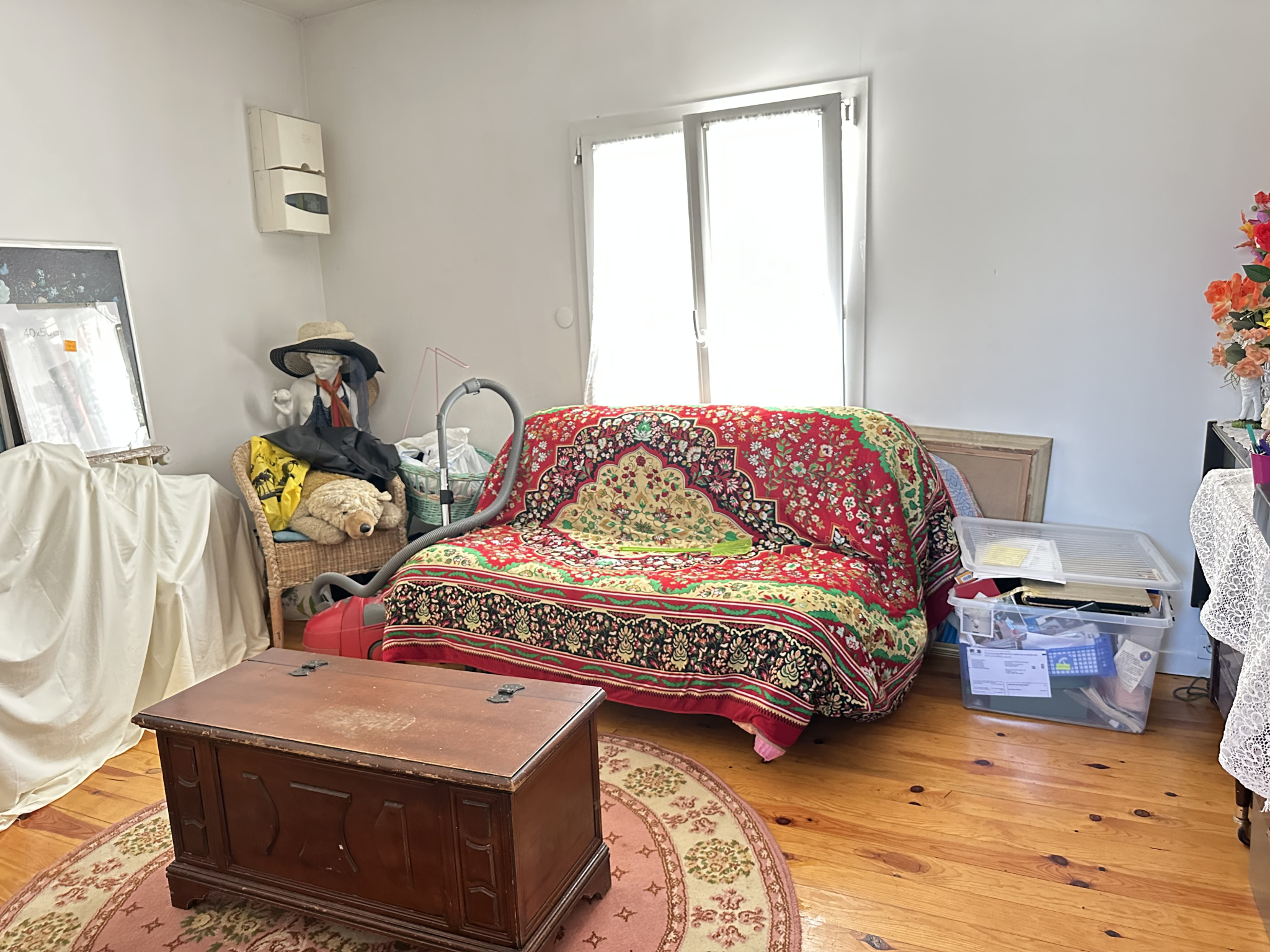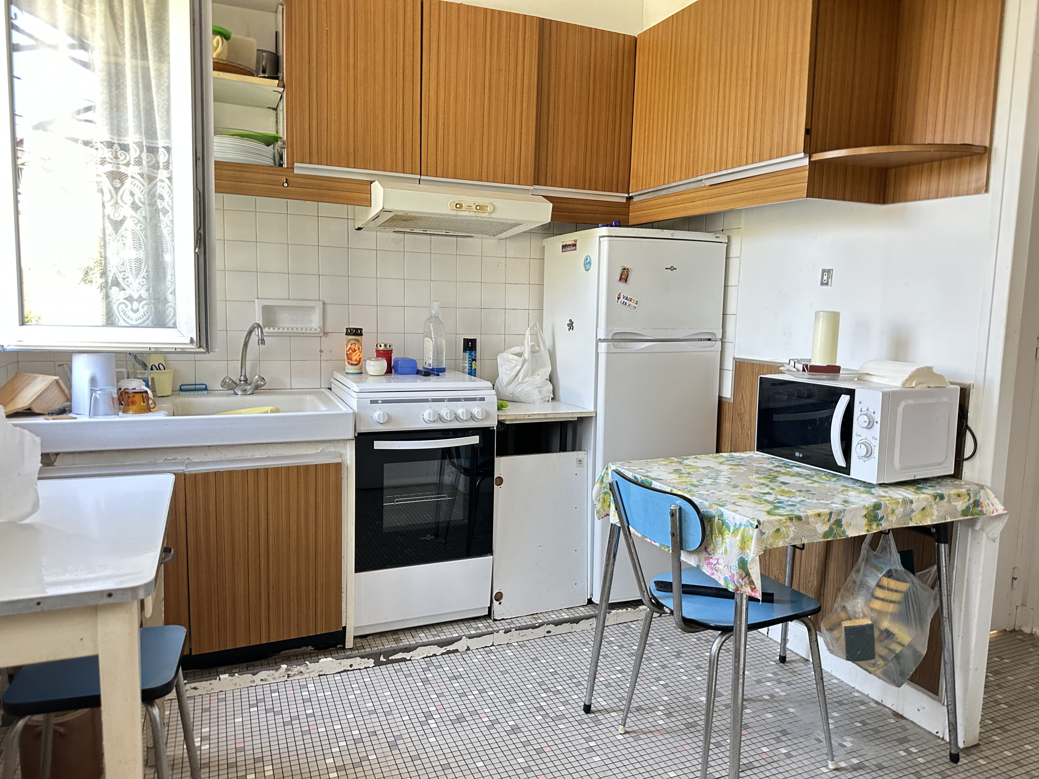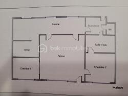 Elle se compose : séjour avec poêle à bois en fonte, cuisine, deux chambres, cellier, bureau, buanderie, toilettes et salle d'eau avec accès à une chambre. Double vitrage PVC. Une place de parking sur le terrain.
