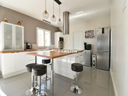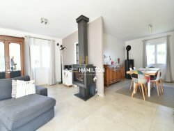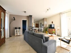 Le c?ur de la maison est son spectaculaire espace de vie ouvert de 75 m². Baigné de lumière naturelle grâce à de larges fenêtres et une immense baie vitrée, il combine harmonieusement un salon chaleureux, une salle à manger spacieuse et une cuisine ouverte entièrement aménagée, parfaite pour recevoir.